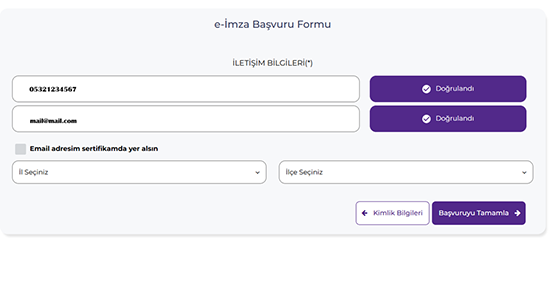 Doğrulamaların ardından, bulunduğunuz il ve ilçeyi girerek ön başvuru kısmını tamamlayınız.